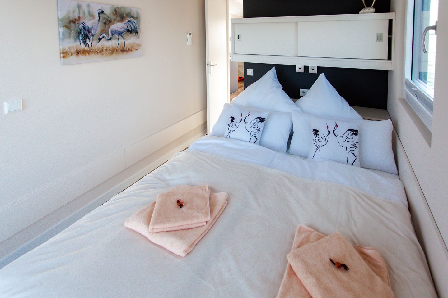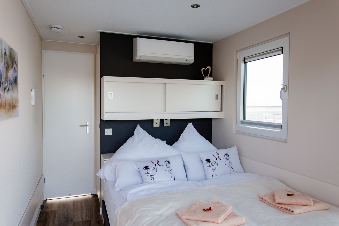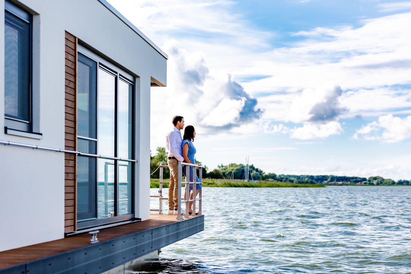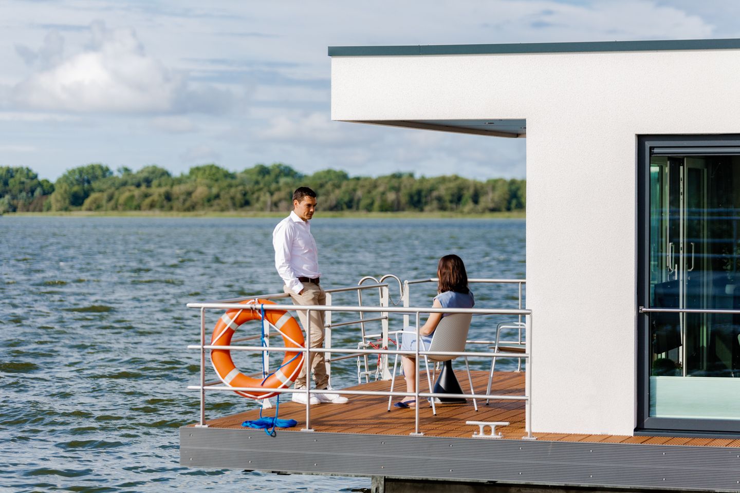 Unser Sunset KranichNest bietet Platz für 4 Personen und hat jede Menge maritimes Flair. Leben auf einem Schwimmhaus bedeutet vor allem, direkt und im Einklang mit der Natur zu sein. Die Glasfassaden im Wohn- und Essbereich (Beschattung jederzeit möglich) verstärken das Gefühl von Freiheit und die Nähe zur Natur.