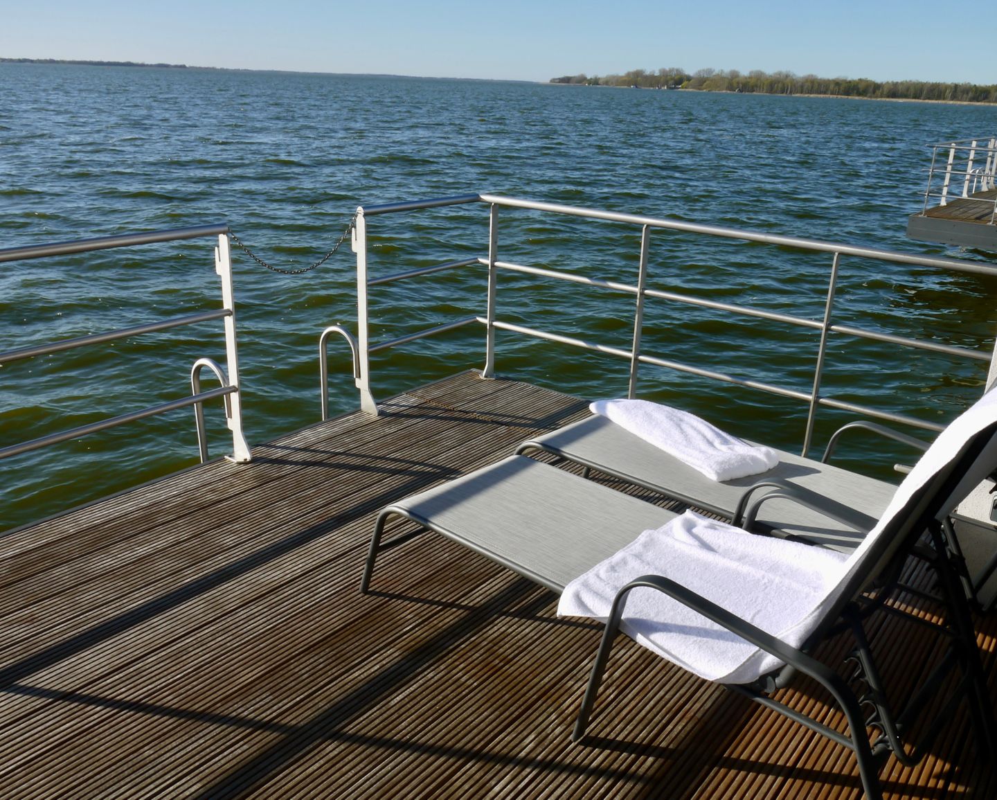 Welcome to KranichNest Schwimmhaus – Uferhaus am Bodden Ostsee, a detached floating house with direct ambience at the water. With a total size of 44 m² and 3 rooms across two bedrooms and a separate living area, it comfortably accommodates up to 4 guests. The house is situated in a bay setting and offers an exceptionally good view of the water, including seaview and landscape views. The atmosphere is described as romantic, family-friendly, and suitable for active holidays—ideal if you want calm days by the water paired with the option to stay active nearby. Since it was built in 2021, you can expect a modern holiday setting.
